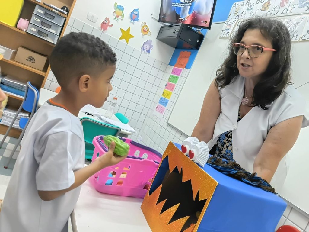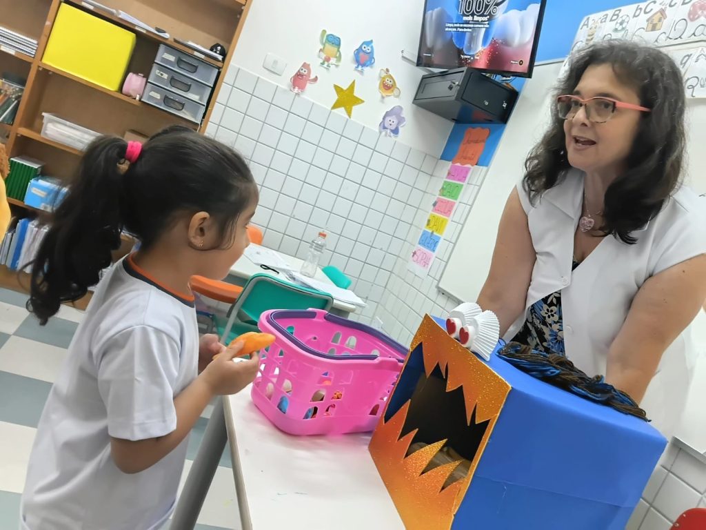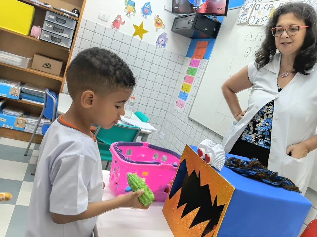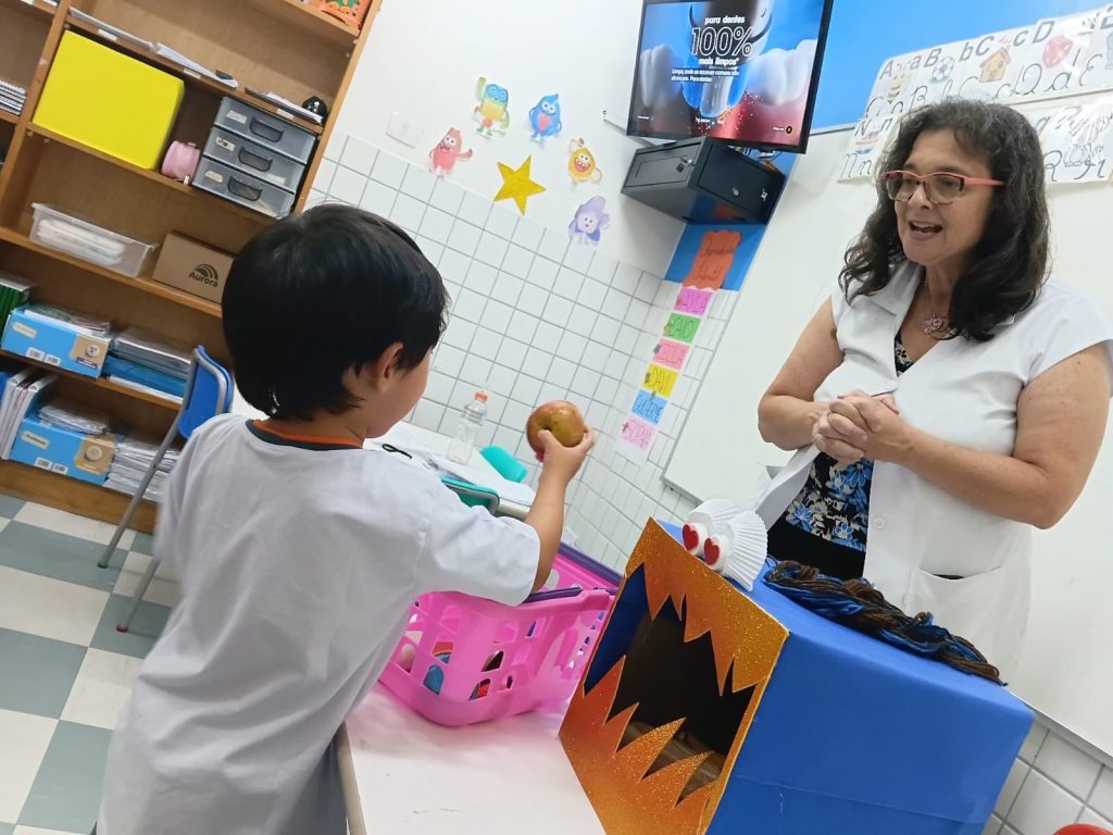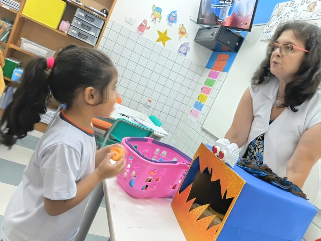 Educação Infantil – Aprendendo frutas e legumes em Inglês – Alimentando o Monstrinho Comilão